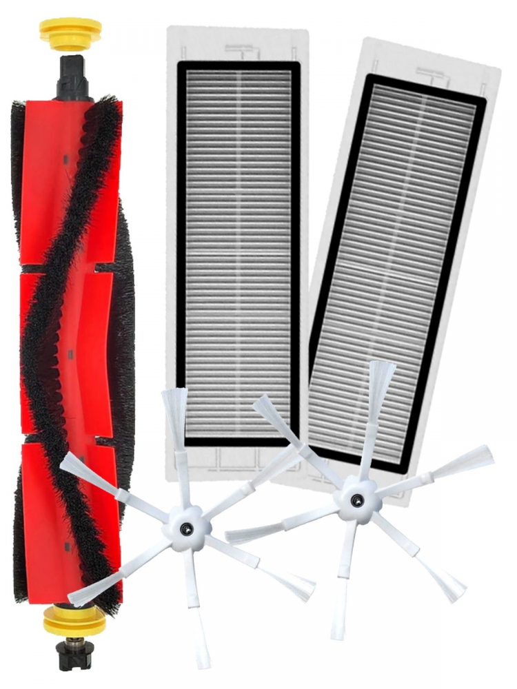 Sada kartáčů a HEPA filtry pro robotické vysavače XIAOMI Roborock S50, S51, S55, S56, S60, S65, S5 MAX, S6 MAX obsahuje 2ks HEPA filtrů, 1x hlavní kartáč se štětinami, 2ks bočních 3R bílých kartáčků
